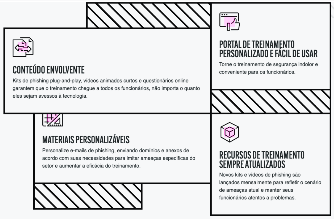 Adicione todos os funcionários à sua equipe de segurança com treinamento de conscientização de segurança que os educa eos capacita a identificar e interromper ameaças de phishing.